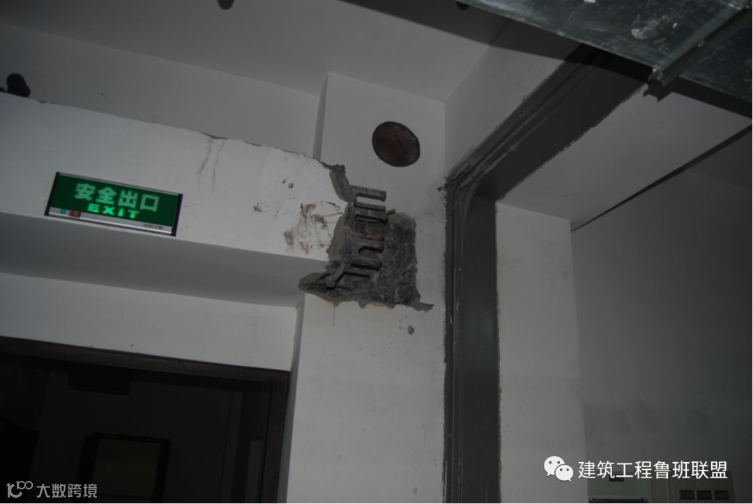 1)在混凝土结构中存在渗漏水现象,混凝土隔墙上使用PVC塑料套管,门框四周混凝土疏松。人防门上挑梁无搁置点或搁置长度不够,人防门、临战封堵上翻梁无配筋,一框两门位置混凝土墙体厚度达不到要求。