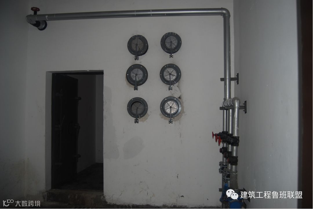 5)防爆地漏品牌不符合要求,地漏未清理,管道未进行通水试验,地漏未刷防锈漆,手摇泵进出水流向装反,进出人防区水管未按要求加阀。
