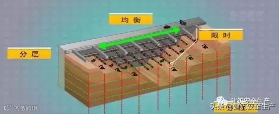 (8)基坑施工应按设计规定的顺序和参数进行开挖和支护,并应分层、分段、限时、均衡开挖。