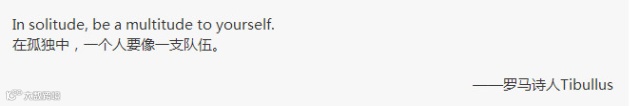 独处是一种能力。一个人的时候也能很快乐,如果你掌握这项技能,相信我,没人能夺走你的幸福。做你自己最好的朋友,享受自己的陪伴,享受一个人的快乐时光。如果你get这项技能,你将会开始感恩周边的人和一切。