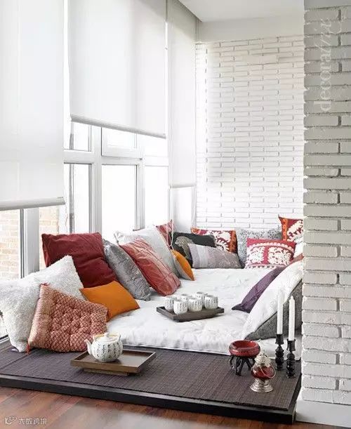 还可以直接在阳台铺上被褥,躺在上面休息,沐浴阳光,十分惬意。