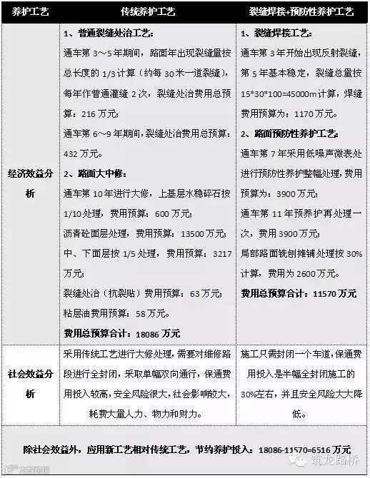 以100km双向四车道高速公路通车前10年为例作预算分析 ,对比如下: