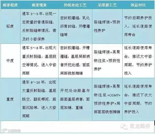 传统的高速公路裂缝处治,日常养护多采用灌缝,大中修采用抗裂贴,对大量存在的反射裂缝起不了太大作用。反射裂缝是从下往上发展的裂缝,常规的裂缝处治技术只能暂时解决短期的表层封水问题,不能从根本上治愈裂缝,解决不了因裂缝产生的结构性破坏问题。<点击免费下载5000g工程资料>