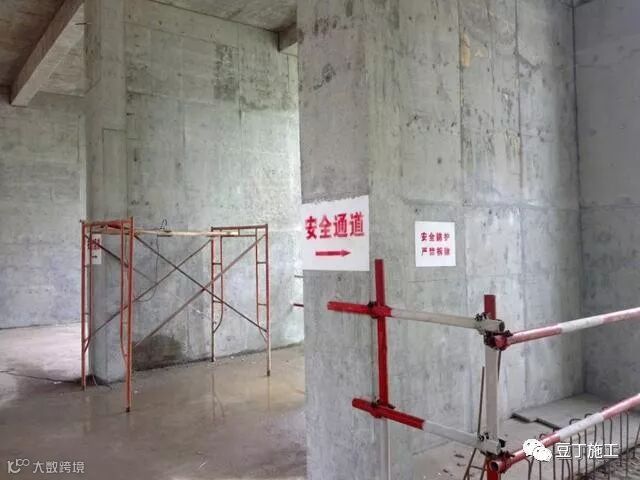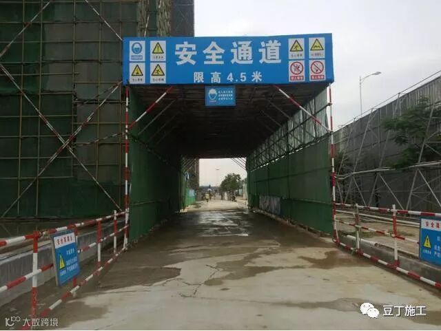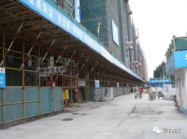 1.外墙脚手架:采用落地与悬挑脚手架、外墙封闭采用阻燃安全网,逐层设置踢脚板及楼层牌、外墙钢管涂刷黄黑油漆,以示醒目,并设置剪刀撑及验收牌。