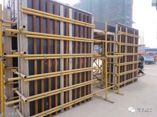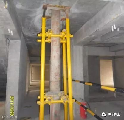 做法:钉木盒子后刷漆(黄黑)黄黑油漆间距200mm,截面尺250*250。