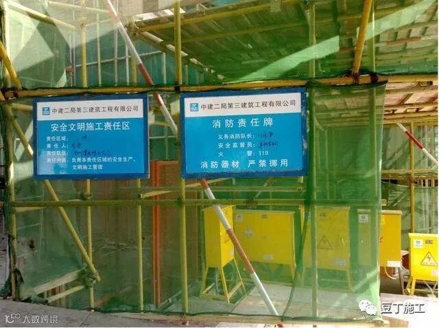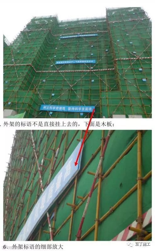 参考品牌布的挂设、表示标语、楼层牌、剪刀撑、踢脚板、塔吊防护平台等