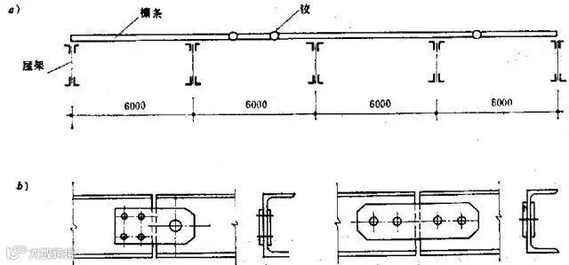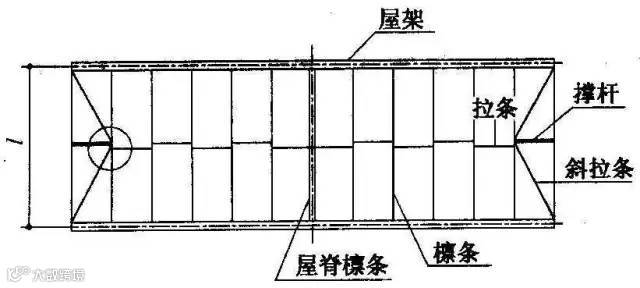(2)当檩条间距较密时,斜拉条角度偏小,不能保证紧张作用,可改斜拉条为桁架;