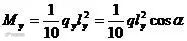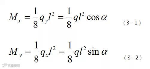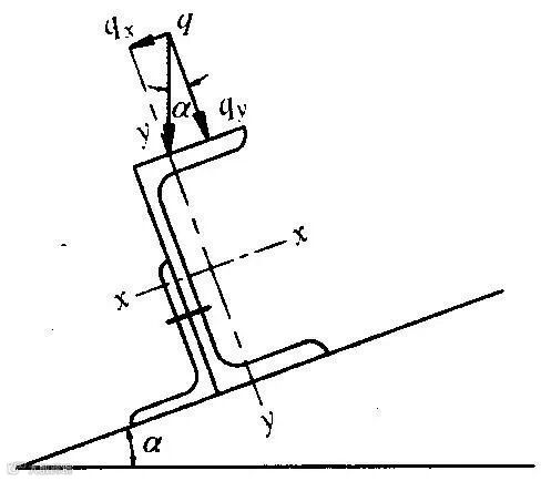 式中 q——檩条承受的屋面荷载(包括自重)设计值,qy=qcosα,qx=qsinα;