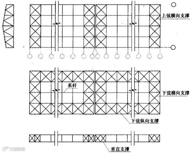 形式:屋盖支撑一般均为平行弦桁架形式(图3-6)。