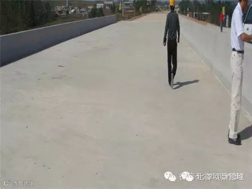 技术要求:单侧采用宽幅轨道式振动梁进行全幅整体施工,确保铺装层厚度、横坡度、平整度符合设计要求。