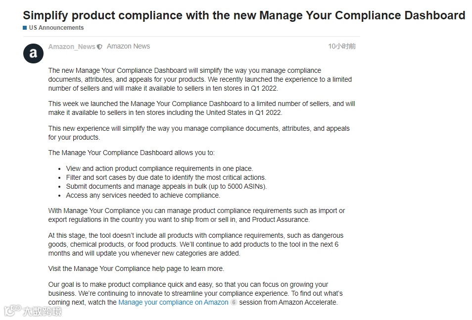 新资讯|亚马逊试运行新的合规性仪表板功能!