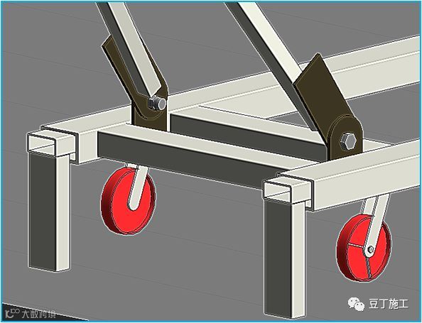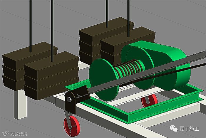 单元板幕墙安装的活动吊车技术是将卷扬机和活动小车进行组合,卷扬机通过滑轮组提供向上拉力,车体下部安装万向轮和支撑臂保证移动和固定使用。替代了传统工字钢导轨式吊车。