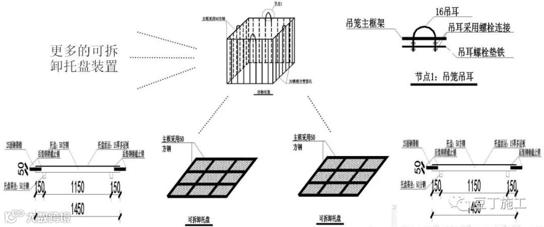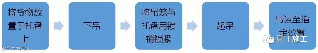 本工程采用“一笼多盘”的方式吊装,可在多个位置同时向托盘中放置货物,操作极其简单。将货物放置托盘之后,信号工指挥塔吊将吊笼吊下,底部工人将吊笼与托盘用锁销锁紧,信号工指挥塔吊将吊笼吊至指定位置完成吊装作业并可直接进行下一位置托盘的吊装。点击>>工程资料免费下载