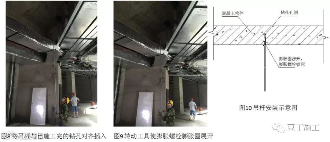 经现场对照,首层采用传统的吊杆安装方式,全部安装完毕共需8.5个小时;二层采用此给出的施工方法,全部安装完毕共需3.5小时。