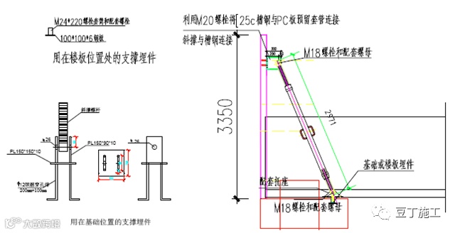 1、PC板通过预埋螺母与现场吊具连接固定,槽钢通过预埋螺栓与PC板固定;