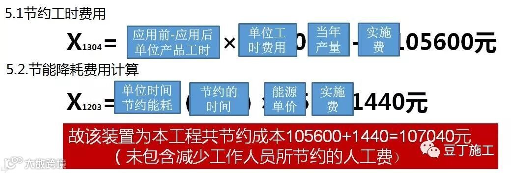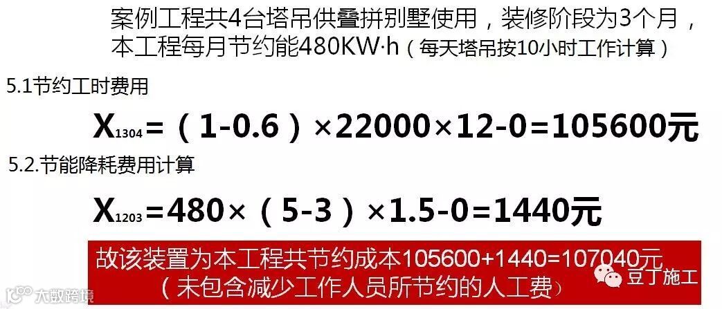 “节约工时”方面:按照《施工科技进步各类新技术效益计价指标及计价方法》,同样以世贸海峡如意城为例, X= (W0-W1)×C×P=(4.5-3)×122657=18.39万