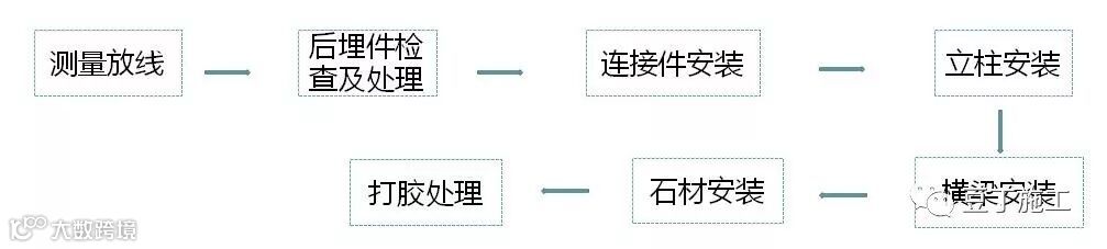 立柱依据放线的位置进行安装。钢立柱类型依据设计要求,必须与土建承重结构有牢靠的固定。