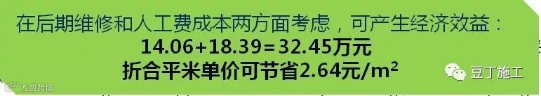 “减少维修费用投入”方面:正常的水泥砂浆维修费用占比约5%,而应用新技术可减少86%,以中建一局世贸海峡如意城项目G002地块为例,维修费用和节省 (327万×5%×86%)=14.06万元;