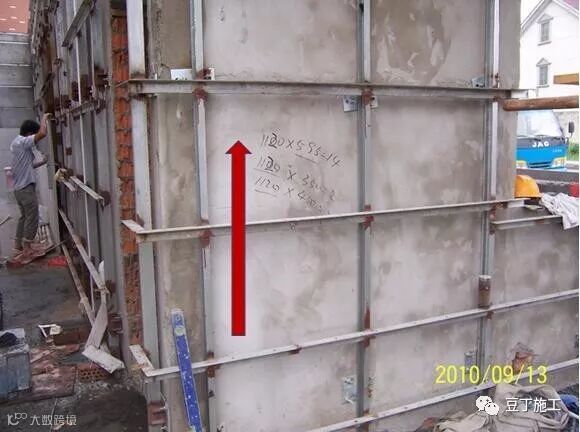 1、严格按照方案要求,将木模板通过螺杆与PC板对拉固定,一头拧入PC板中预埋固定件,一头拉住模板背楞钢管;2、三角撑隔400mm布置,与模板通过勾头螺栓连接,底部通过地埋压固,确保整体体系稳固。3、混凝土浇筑严格按方案要求顺序和速度浇筑,安排专人看模