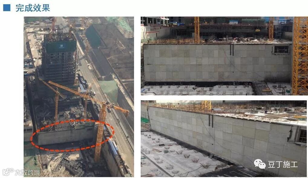 1、城市核心区,用地紧张,周围都是已完成在建项目,没有地下室外墙施工空间;