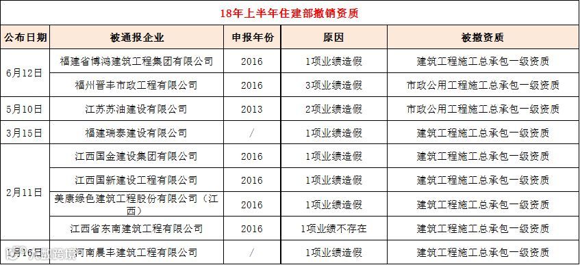 上半年(1--6月份),有16家企业的18项资质被住建部撤销,业绩造假数目更是多达58项。点击>>工程资料免费下载