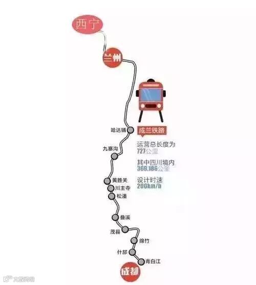 起于青白江区,经广汉、彭州、什邡、绵竹、阿坝州茂县、九寨沟,总长727公里。届时从成都出发,2小时可到九寨沟,4小时可到兰州。