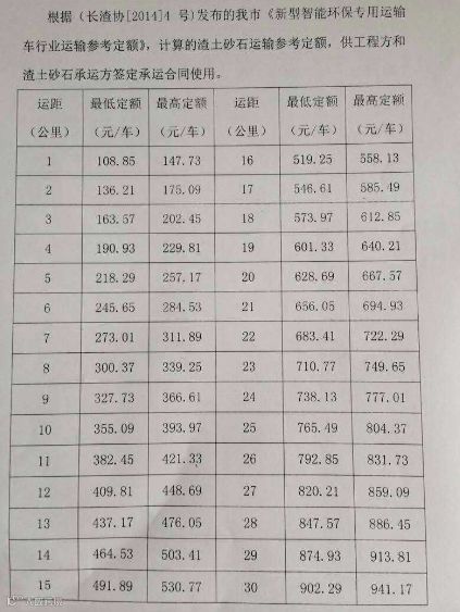根据从渣土协会调查得知,对于新型环保车,政府指导价,最低108.85元/车起步,每增加一公里,约增加27-28元/车,折合方量为3.5元/m3左右。政府指导价示例如下: