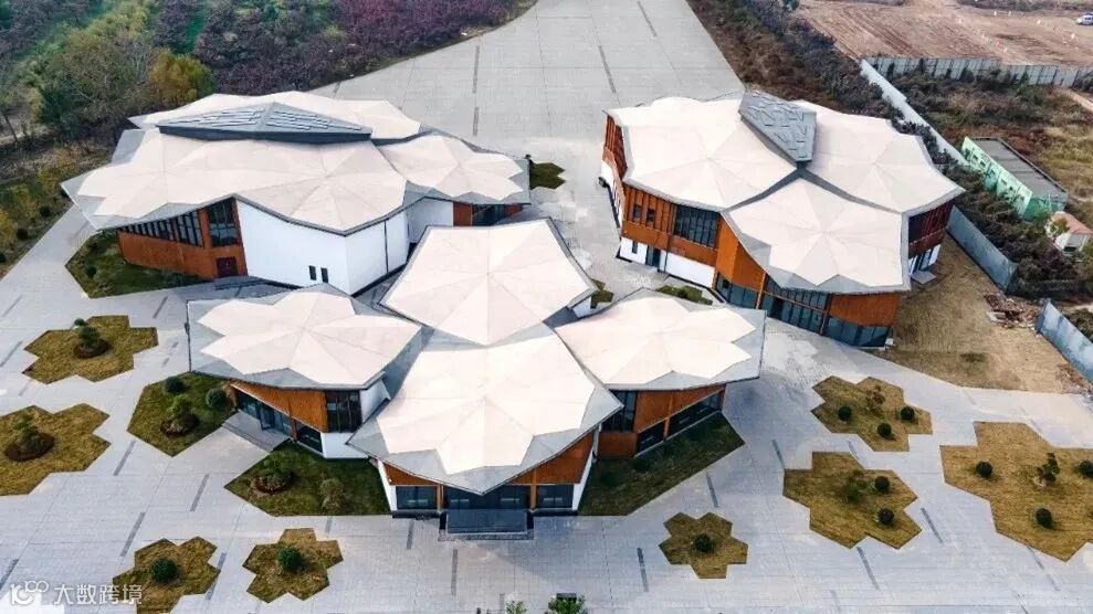 阳信万亩梨园游客服务中心位于山东省滨州市阳信县,建筑的构成图案采用正五边形,建筑的主体结构采用了胶合木结构,梁柱使用了由加拿大花旗松加工而成的胶合木,框架结构中的木材选用了加拿大SPF。