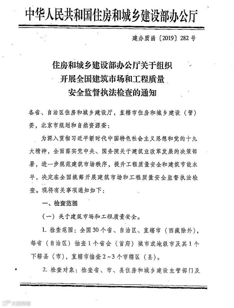 4月,住建部办公厅发布通知,在全国范围内开展建筑市场和工程质量安全监督执法检查。