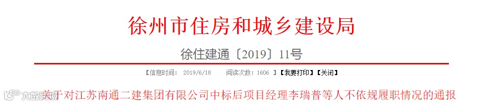 2、对江苏南通二建集团有限公司进行全市通报批评,同时,责令其加强对在岗人员管理,切实履约履职,并将整改情况报送我局。