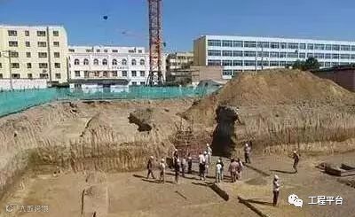 (2)观察基槽边坡是否稳定,是否有影响边坡稳定的因素存在,如:地下积水、坑边堆载过大或近距离扰动等(对难于鉴别的土质,应采用洛阳铲等手段挖至一定深度仔细鉴别)。