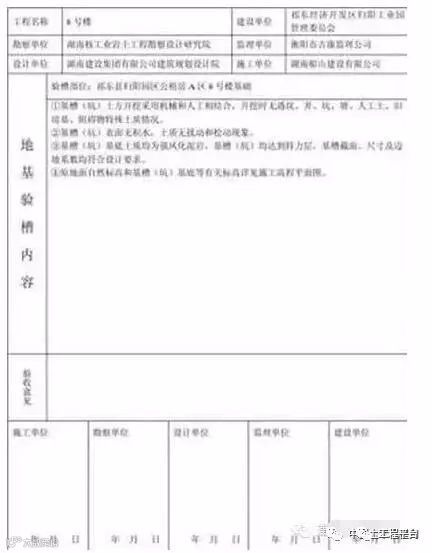 当参与验槽的五方责任主体对验槽结果没有异议时,分别签字盖章。注意这个验收记录必须参与各方技术负责人现场签字,要不你到人家单位盖公章的时候会很费事的。