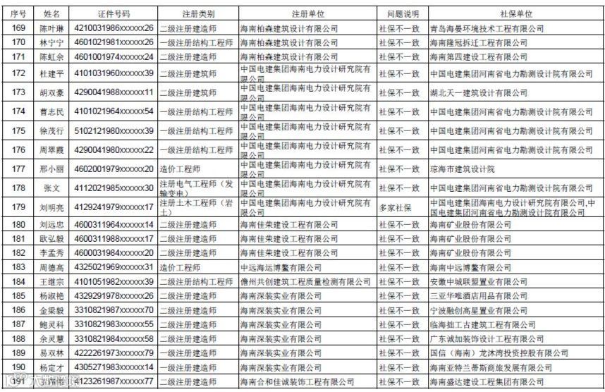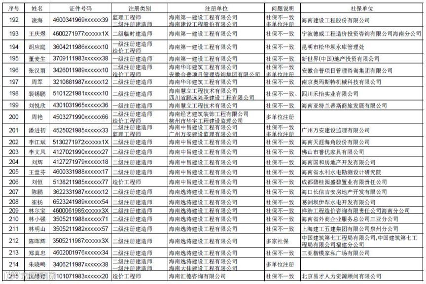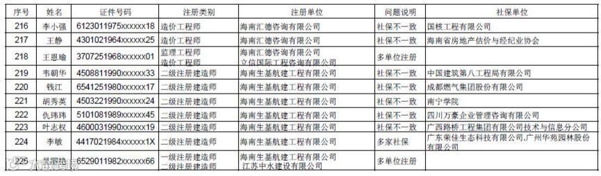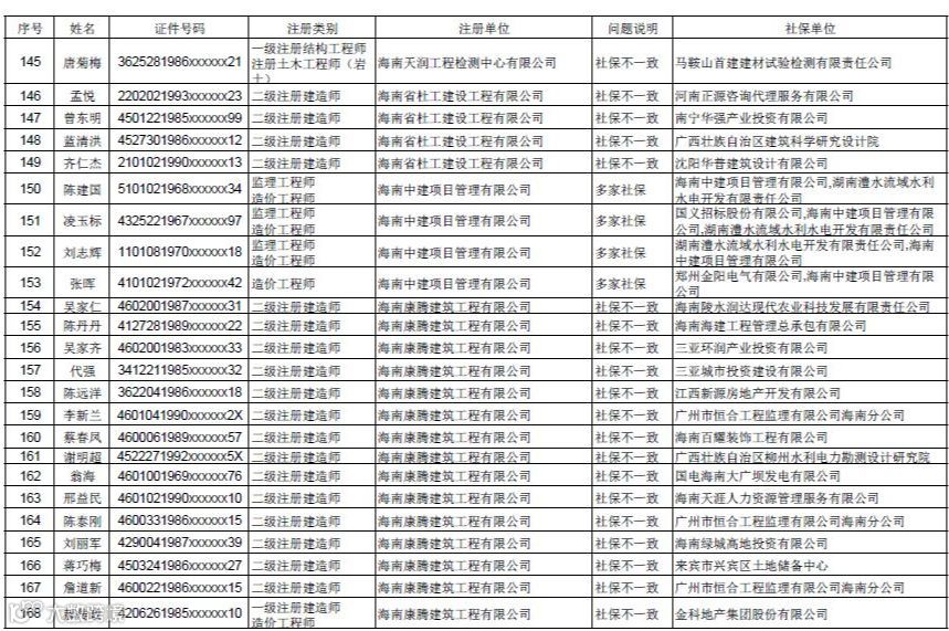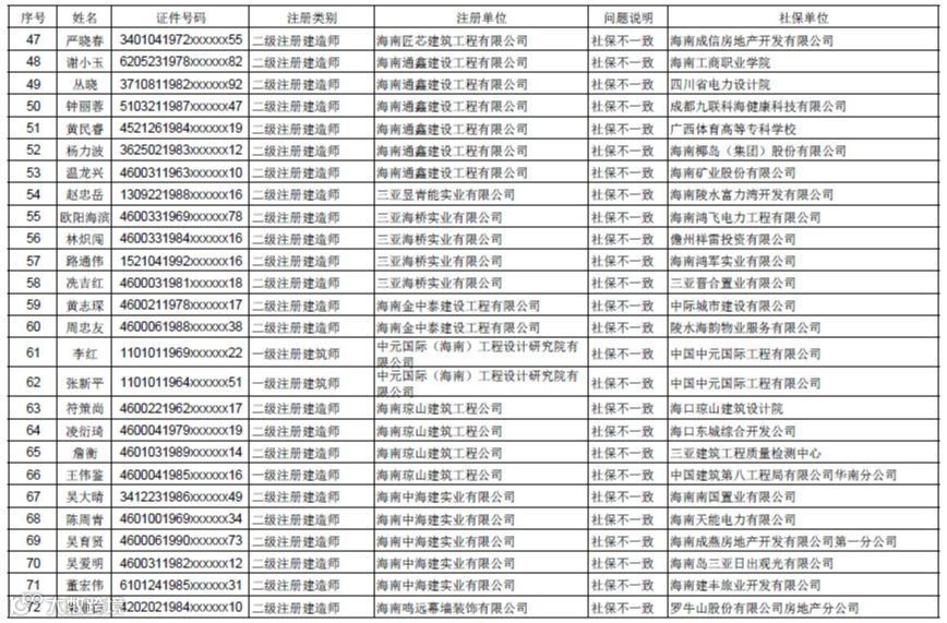 9月2日,继天津市挂证处罚后,海南省也公布了72家单位和225名注册工程师涉嫌“挂证”,撤销注册,拉入黑名单: