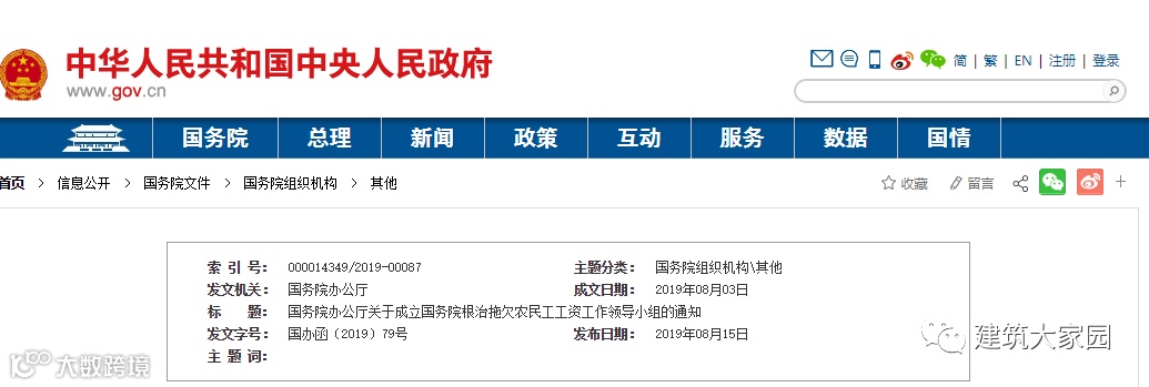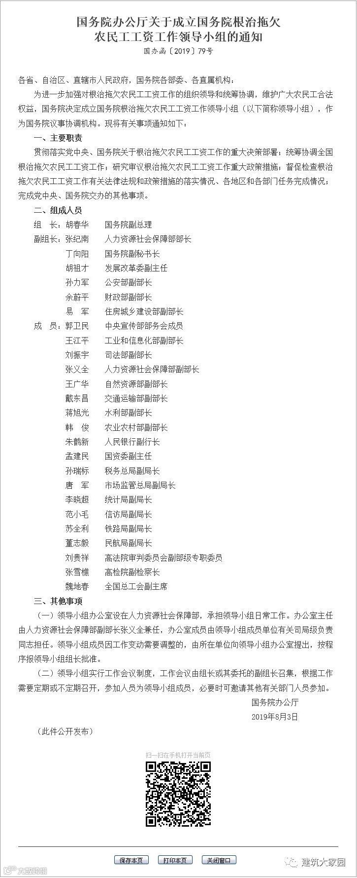 近日,国务院发布《关于成立国务院根治拖欠农民工工资工作领导小组的通知》,决定成立专门的工作领导小组,作为国务院议事协调机构。