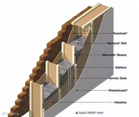 再来看看现代轻木框架的火灾应对和防范措施:现代木结构建筑在覆面OSB板外面增加双层防火石膏板,用以阻隔火灾对木结构的破坏,实验表明,增加12-15MM厚的防火石膏板在曝火时间183min的情况下比相同厚度的普通石膏板耐火表现好很多;采用双面单层15mm或双面双层12mm的防火石膏板,可以到达1小时的耐火极限,能满足我国木结构建筑墙体非承重墙、承重墙、外墙的的耐火极限要求;另外现代木结构在防火墙方面采用砖混或钢混结构的不燃烧体,以使建筑性能能满足我国建筑规范必须使用不然体,3小时耐火极限的要求。