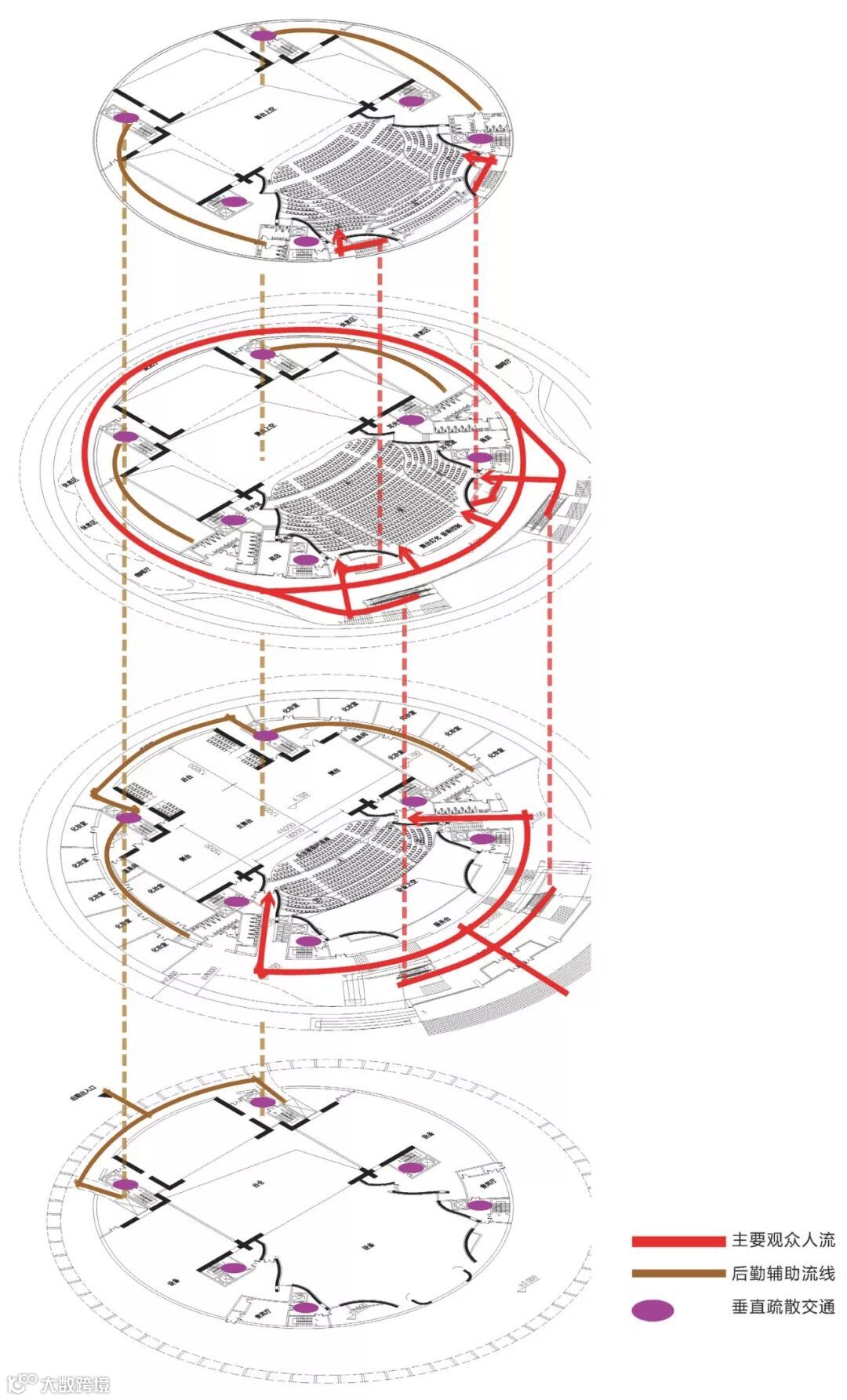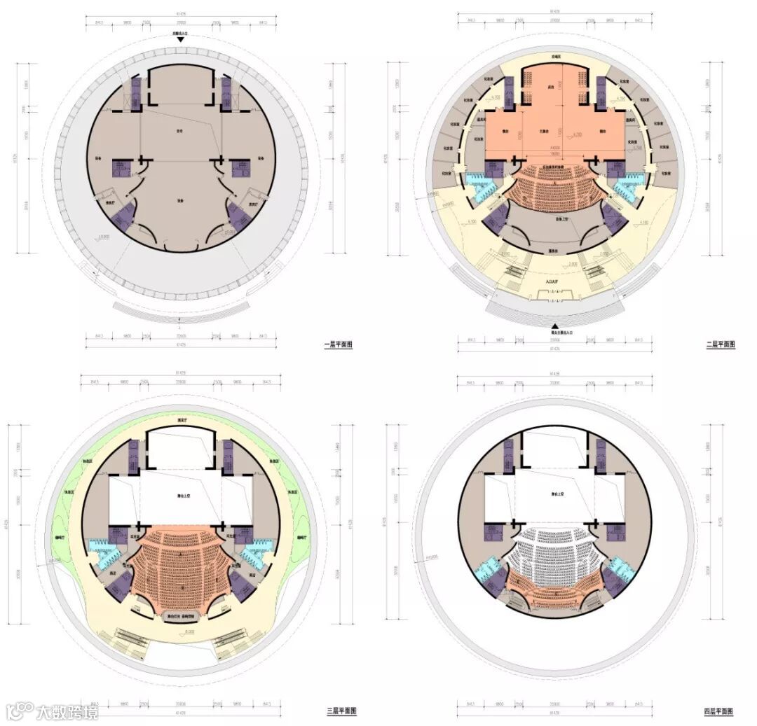 大剧院总高度约为46米,为了在充分利用空间的同时保持穹顶高度,大剧院主体为一层以上。