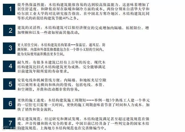 木结构建筑:在北美,SPF被广泛应用于木结构建筑,特别是单体房屋中。现在,在欧洲和亚洲的国家,许多人正寻找一种 经济和耐用的建筑方法,以取代老化或被损坏的房屋,或者在改建房屋以容纳增长的人口时,都会考虑选择切 实有效木结构建筑和SPF板材。 不管是在现场搭建还是在使用预制构件,木结构建筑是快速,轻便,久经验证的住宅,公寓和商用建筑建造方法。它已经经过了大量的研究测试,被证明能适应最不利的天气状况。木结构建筑拥有以下诸多优势