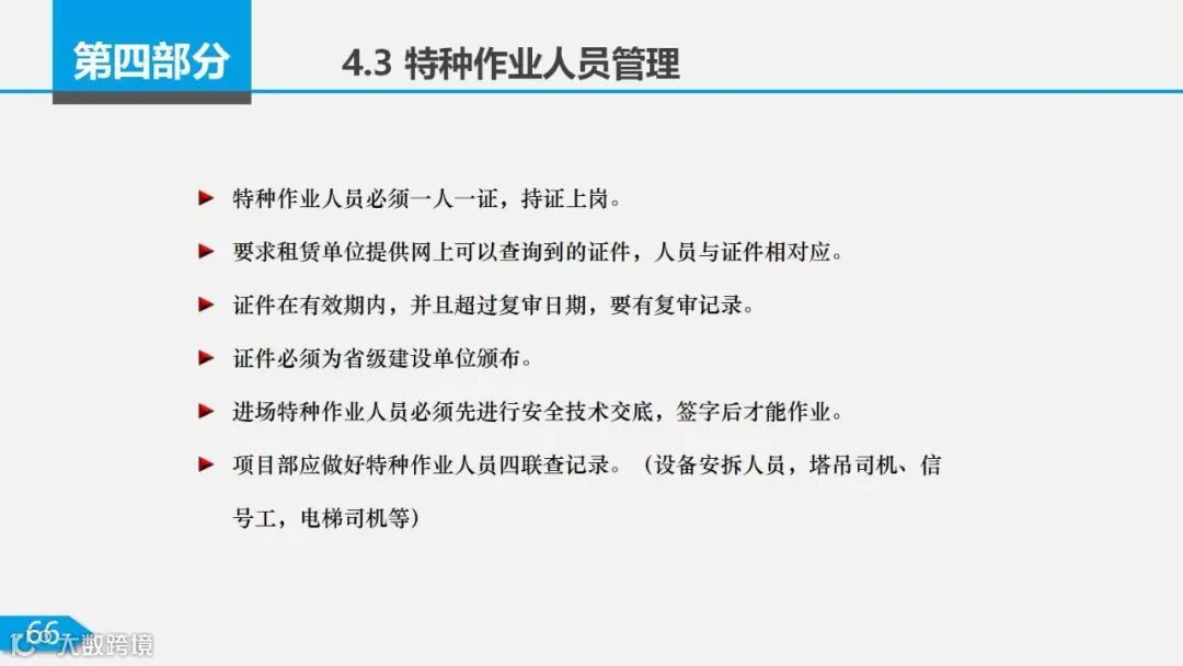 3.现场操作司机、指挥是否持证上岗,安全教育、安全技术交底是否落实,能否做到专人专机,并有交接班记录。