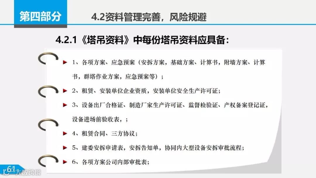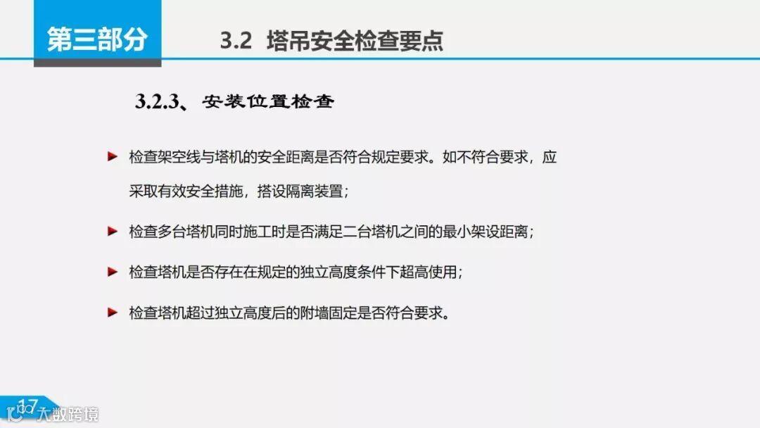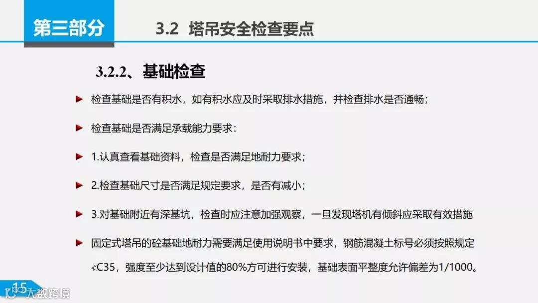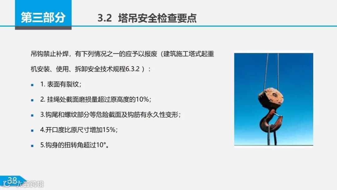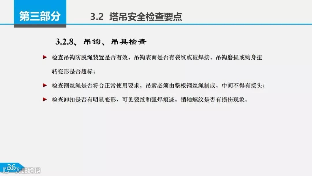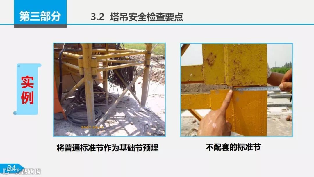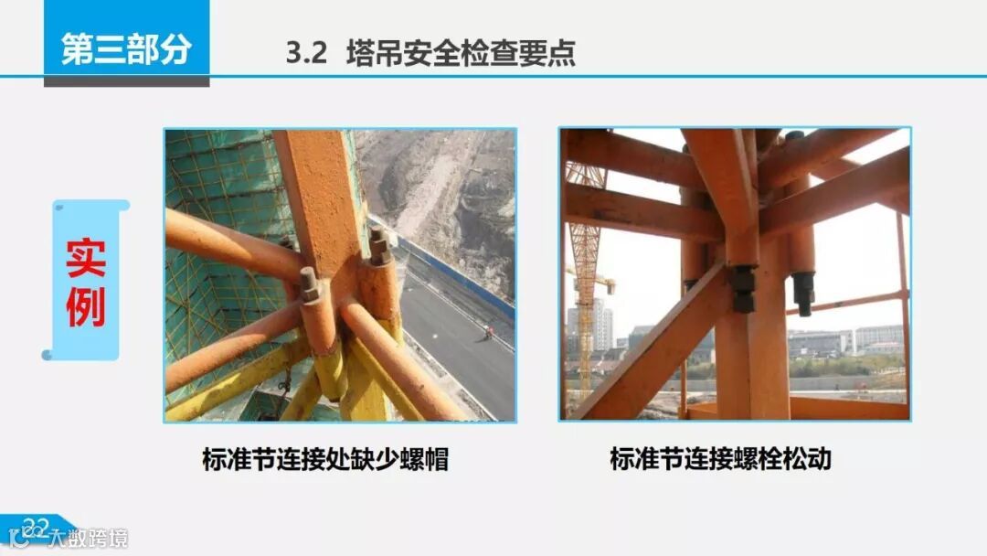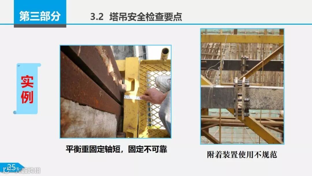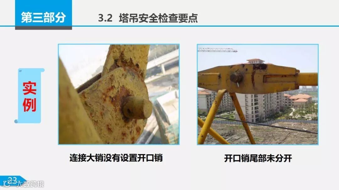 1.塔吊是否满足市场准入条件(查注册登记号):塔吊达到报废年限或存在安全隐患的应禁止使用;塔吊属于落后淘汰的产品应禁止使用。