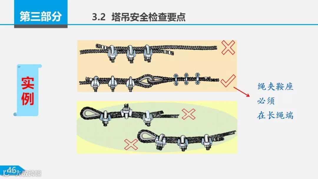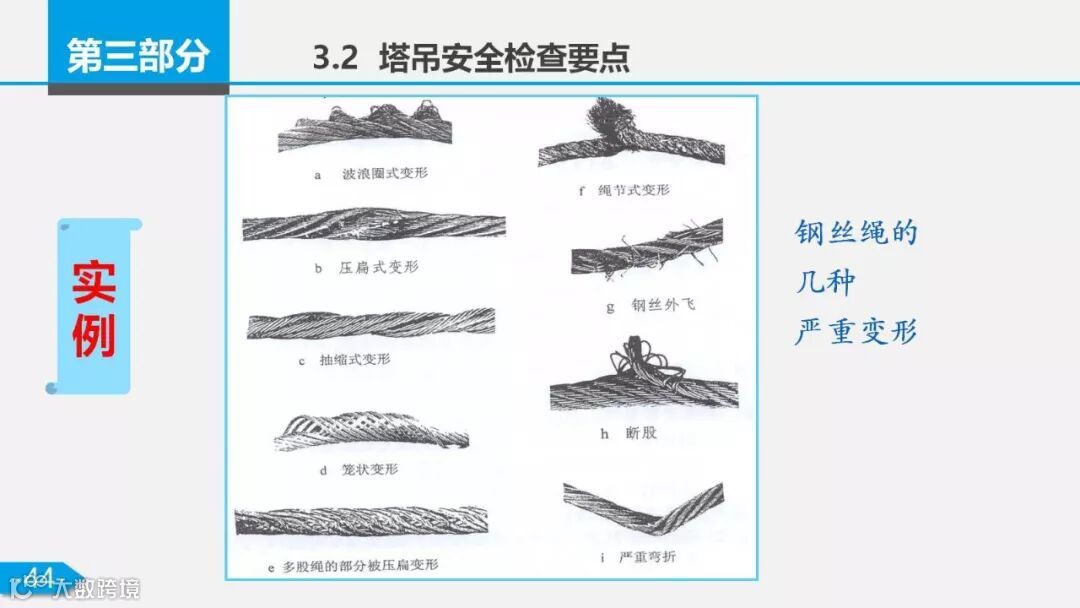 5.塔吊的钢丝绳有两根,要每天检查,一旦钢丝绳上起了毛刺应立刻换掉,绝对不能有侥幸心理,否则后果可能很严重。
