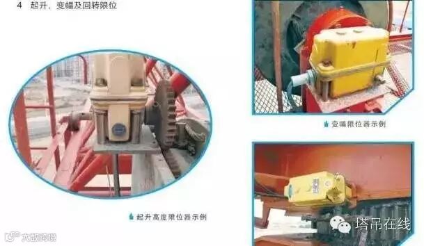 2)小车变幅的塔式起重机应安装小车行程开关,动臂变幅的塔式起重机应安装臂架幅度限制开关,并应灵敏可靠;