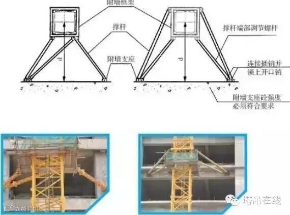 1)当塔式起重机高度超过产品说明书规定时,应安装附着装置,附着装置安装应符合产品说明书及规范要求;