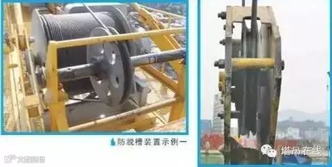 2)滑轮、卷筒应安装钢丝绳防脱装置并应完整可靠,滑轮、卷筒的磨损应在规定允许范围内;
