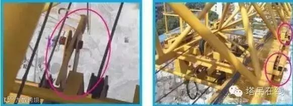 1)吊钩应安装钢丝绳防脱钩装置并应完整可靠,吊钩的磨损、变形应在规定允许范围内;