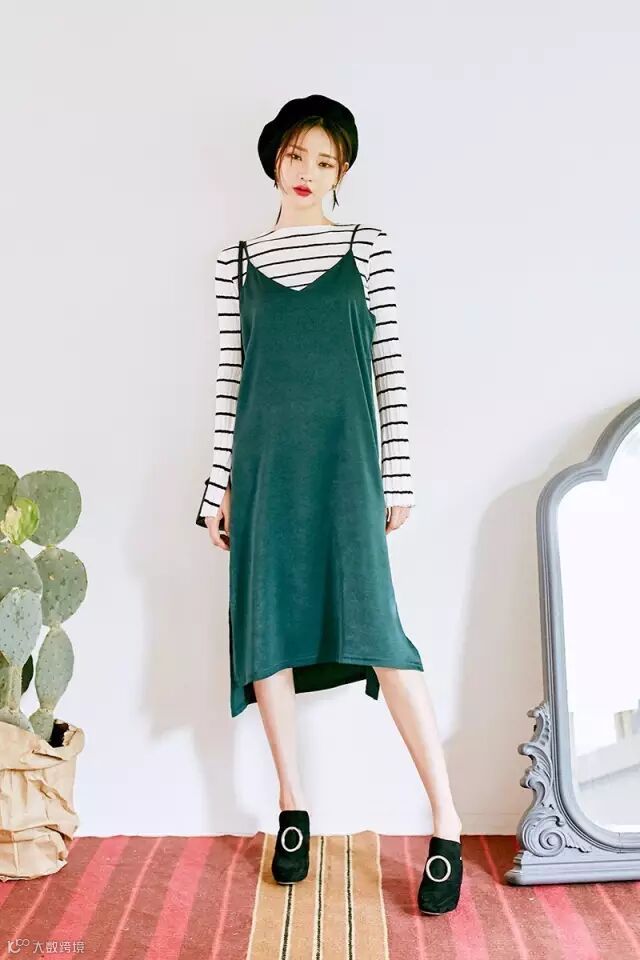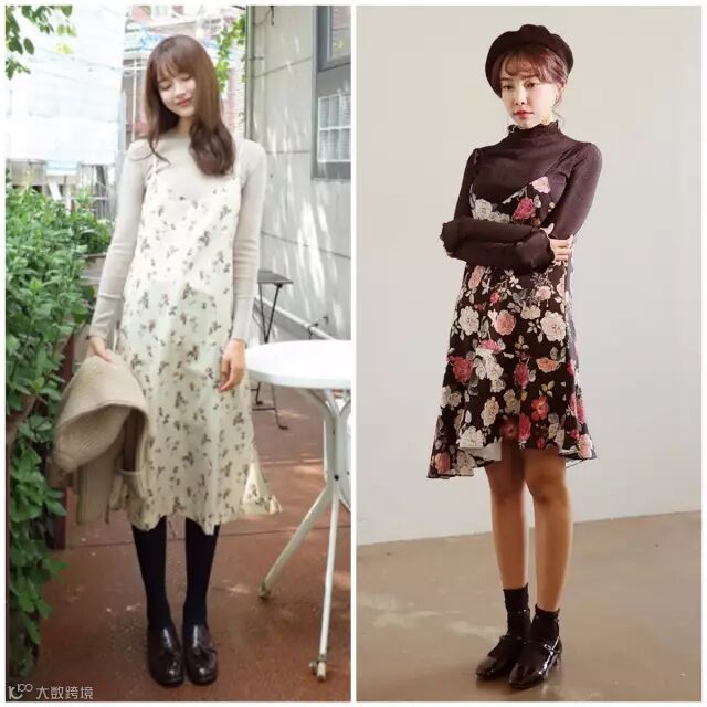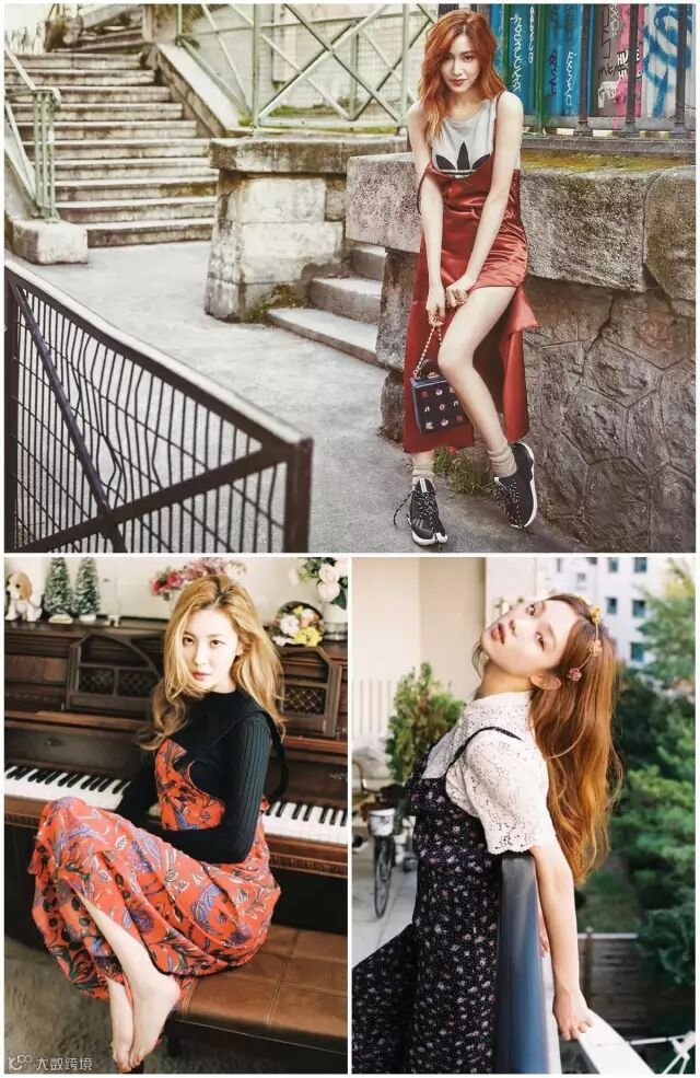 纯色系吊带裙比较好搭,花裙子就没那么容易了