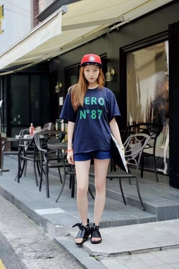 (卫衣+光腿+球鞋+白袜=教科书式的韩国妹搭配)