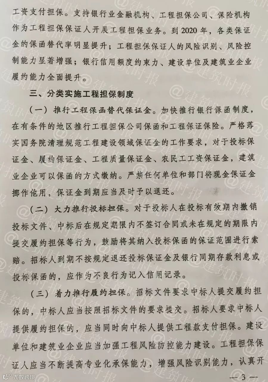 《加快推进房屋建筑和市政基础设施工程实行工程担保制度》正式文件终于来了!!