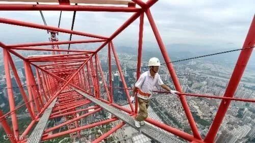 我多想说一句:工地人请你一定要小心,我真的不敢直视你这样的操作,我想你的妻子更不愿看到这样的情景,因为底下是万丈深渊,一不下心就有生命危险。