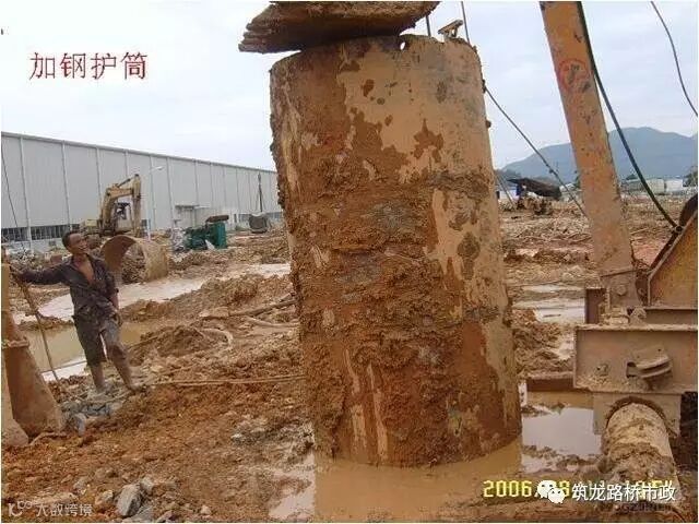 ②护筒的内径比钻孔桩设计直径稍大。用回转钻机钻孔的宜加大20~30厘米;用冲击钻和冲抓钻钻孔的宜加大30~40厘米。