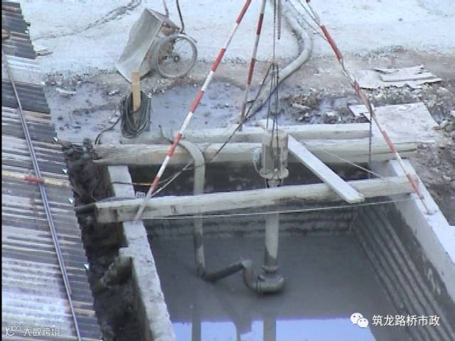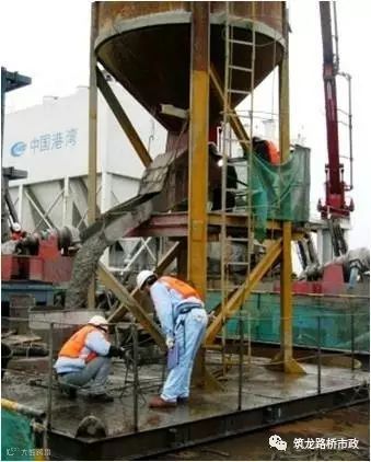 浇注水下混凝土不能将混凝土直接倾倒于水中。因为当混凝土直接与水接触穿过水层时,骨料和水泥很快将产生分离,骨料很快沉入水底,而水泥在较长时间内呼吁悬浮状态,当其下沉时,已凝结硬化。因此水下混凝土的浇注,必须在与周围环境水隔离的条件下进行。水下混凝土浇筑的方法很多。最常用的是导管法。